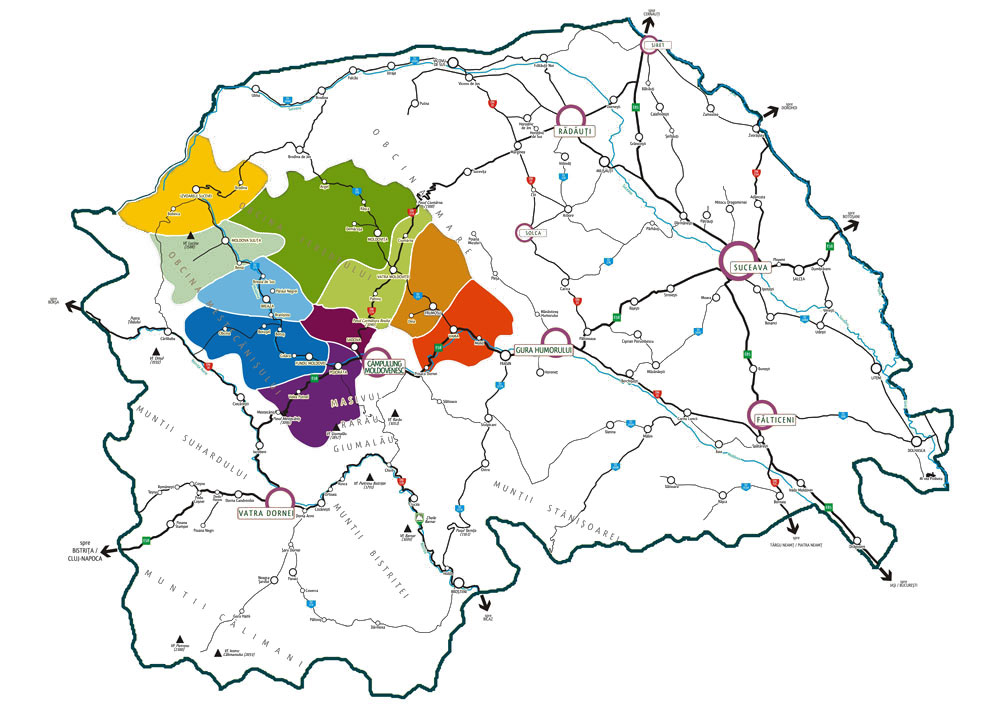 • 10 comune din judeţul Suceava, respectiv: Breaza, Frumosu, Fundu Moldovei, Izvoarele Sucevei, Moldova Suliţa, Moldoviţa, Pojorâta, Sadova, Vama şi Vatra Moldoviţei;
